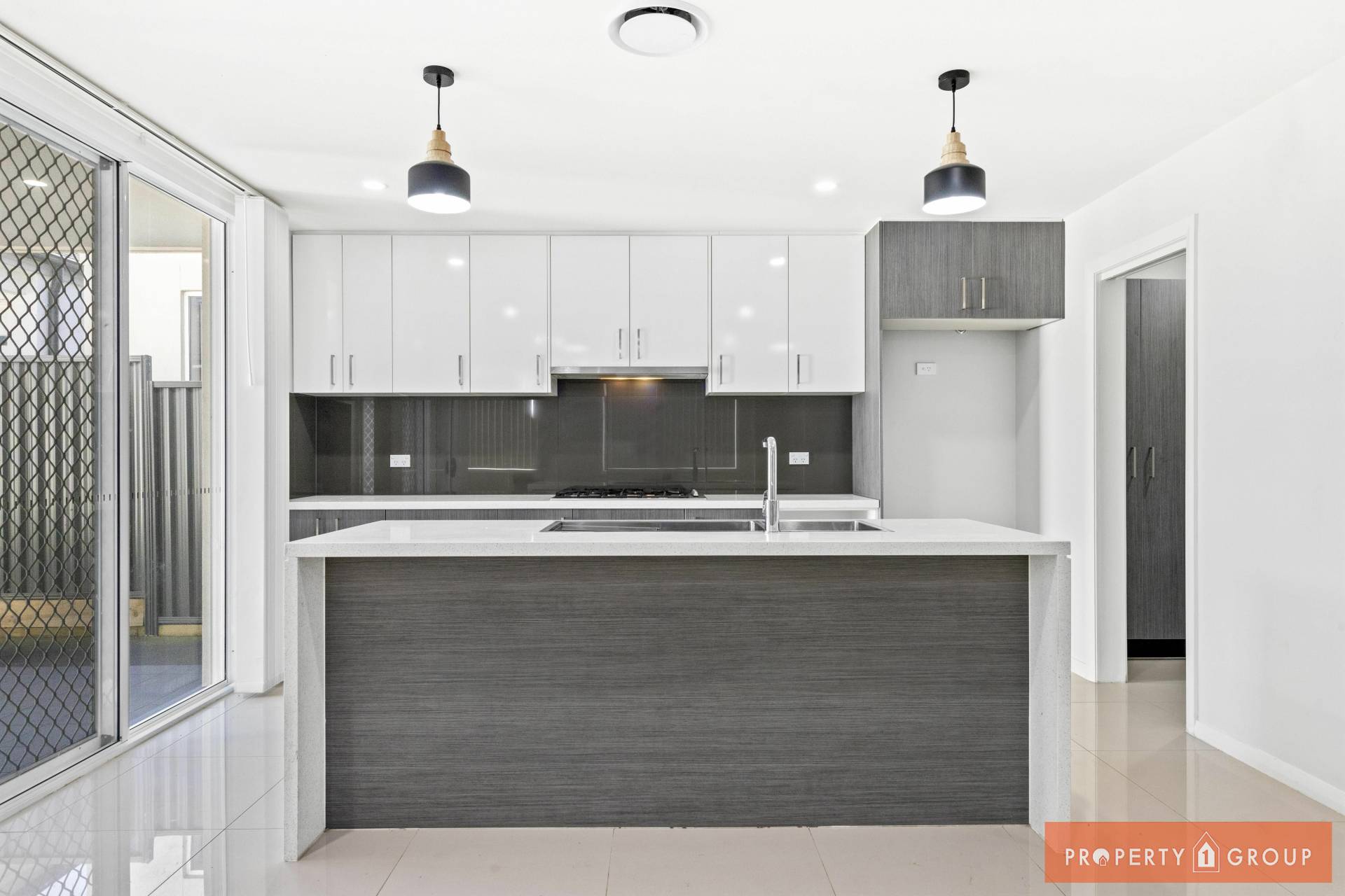 * Contemporary designed kitchen with stone bench tops , gas cooktop and walk in Pantry.
