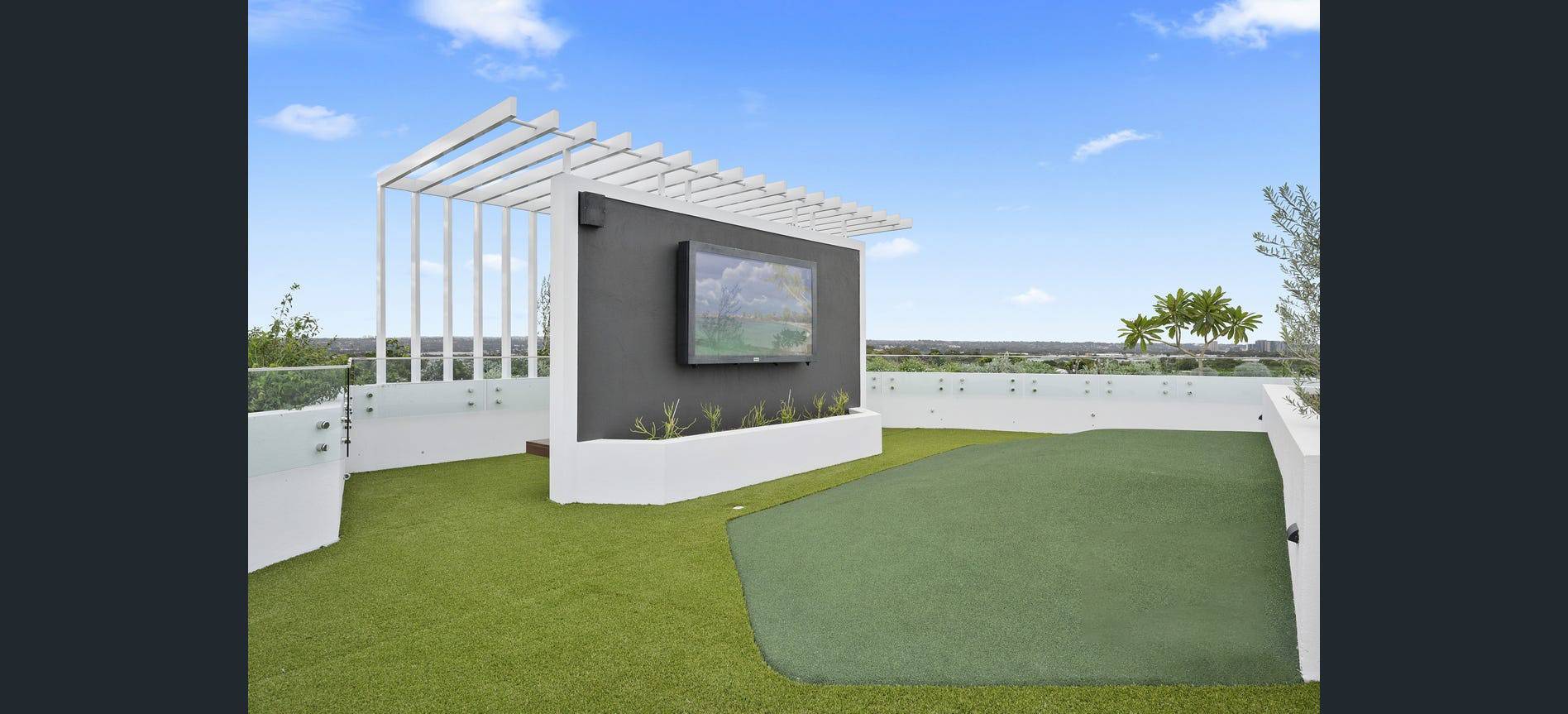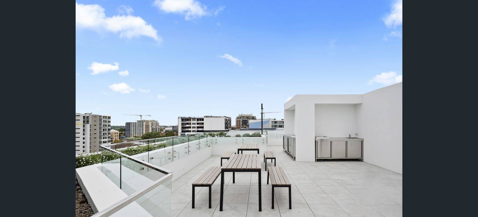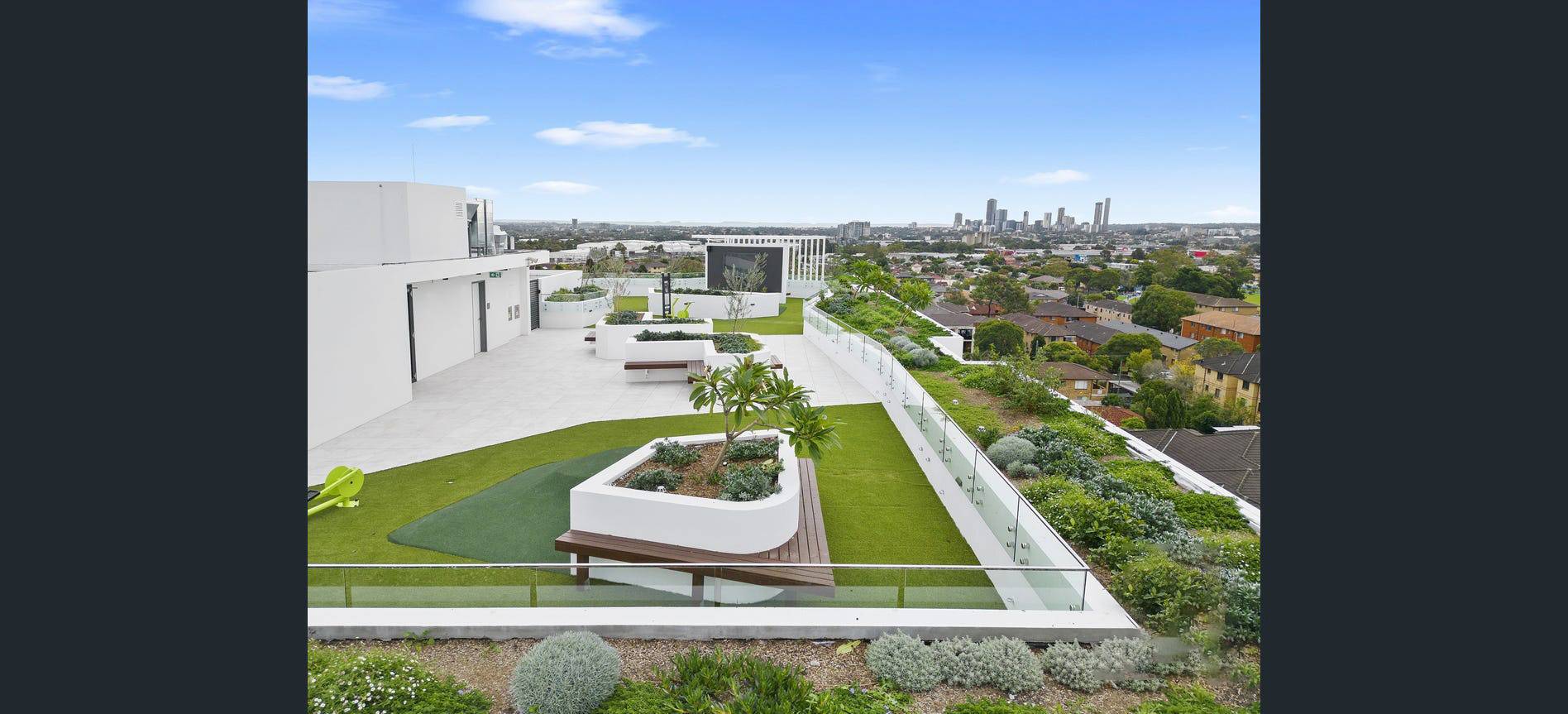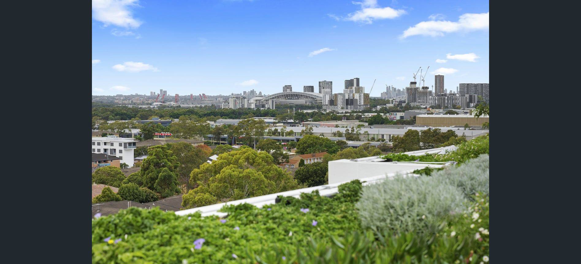 Expansive views towards the CBD and Sydney Olympic Park greet you when you step out into the impressive rooftop garden.