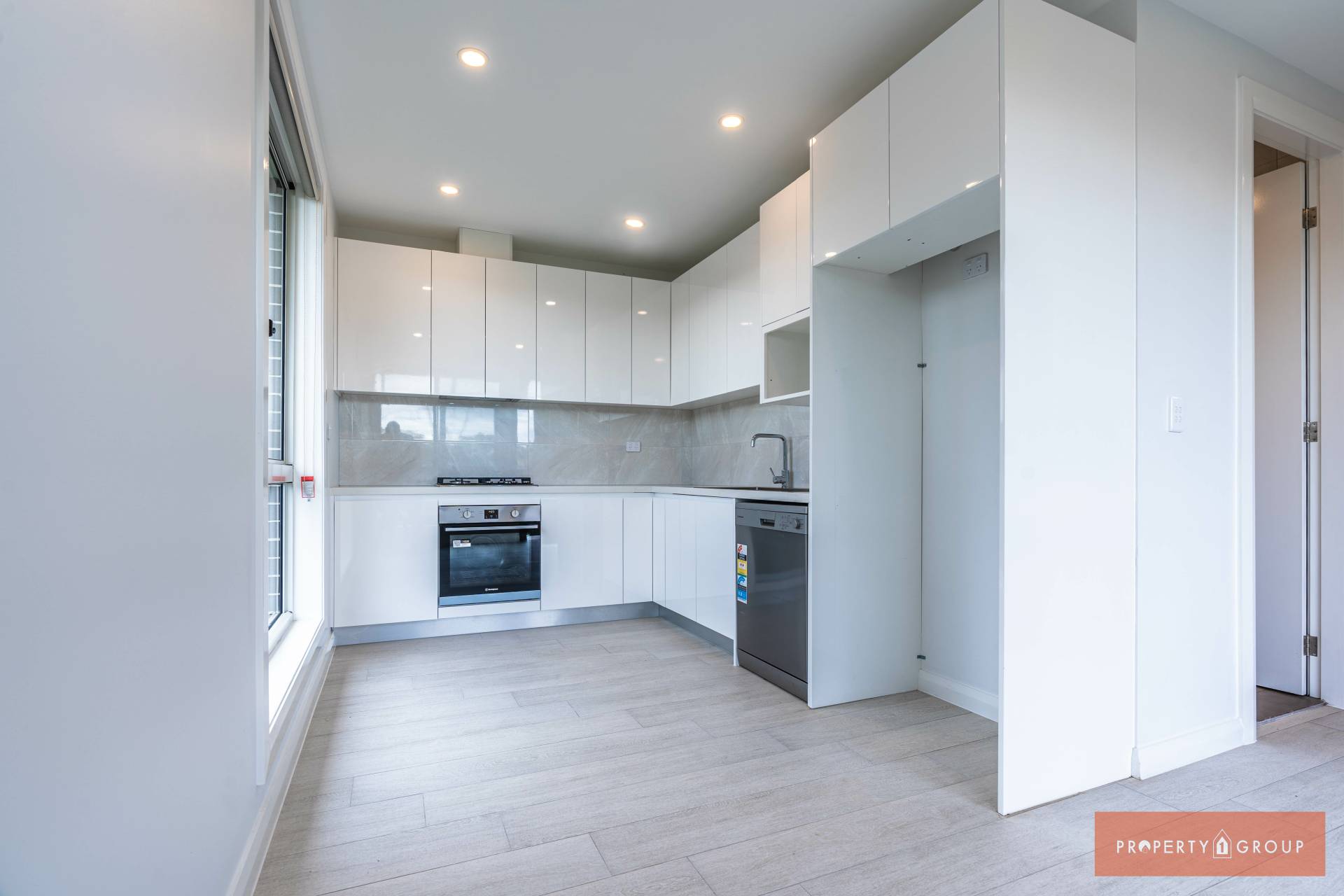 *  Gas cooking kitchen with Caesar stone benchtop and soft close hinges