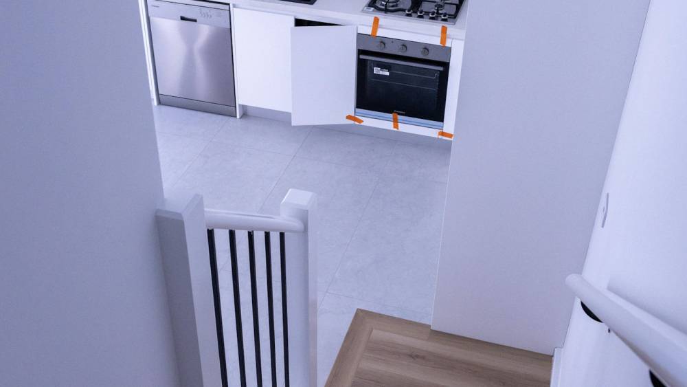 -   Gas cooking kitchen with Caesar stone benchtop and soft close hinges
