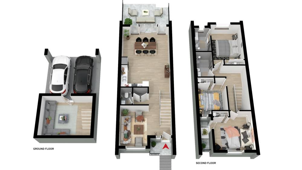 These architecturally crafted 3-bedroom family townhomes combine modern practicality with a sustainable design ethos, seamlessly blending everyday convenience with the calming embrace of nature.