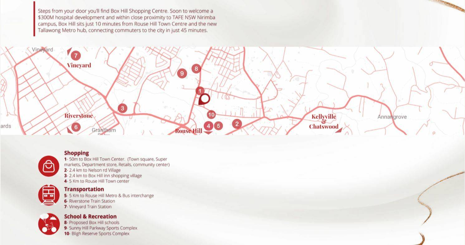 5km to rouse hill metro and bus interchange.