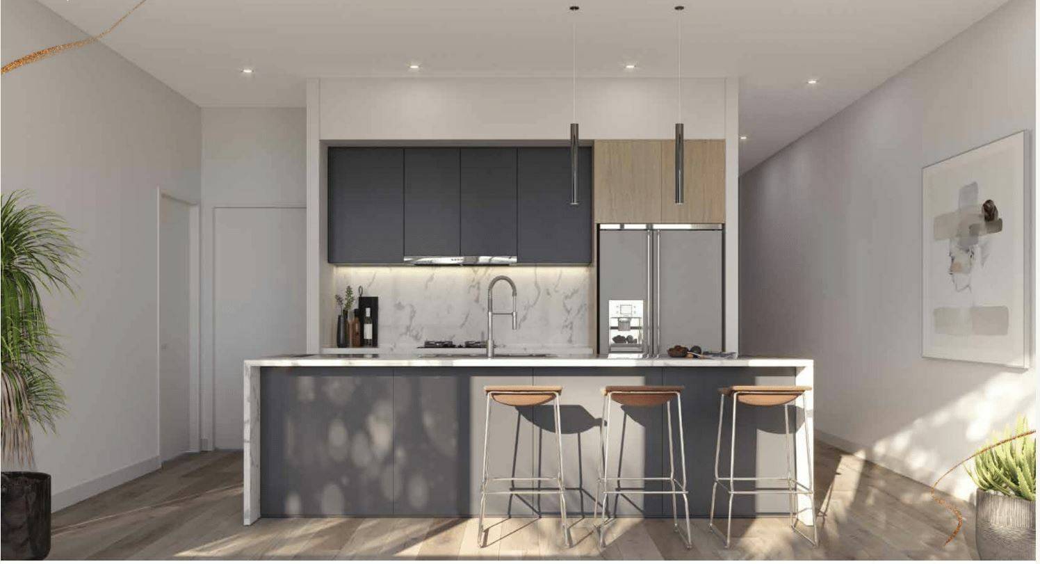 • Sleek 40mm stone benchtops in the kitchen