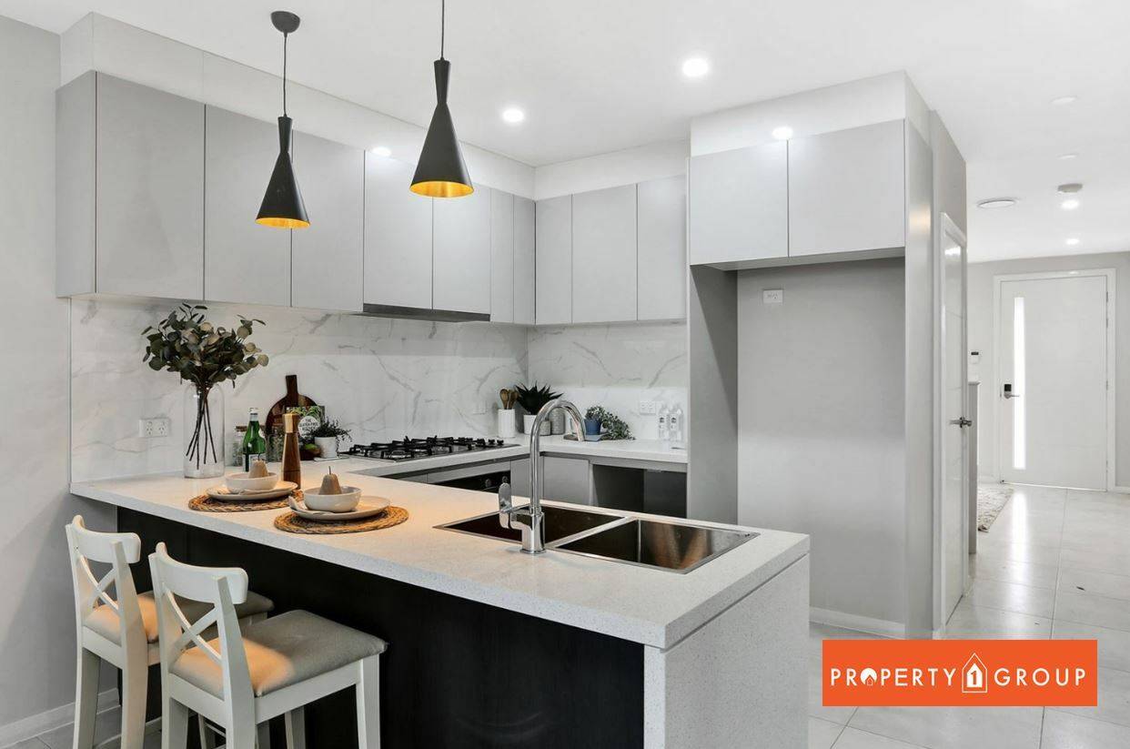 - Modern kitchen appliances with plenty of storage and 40 mm Waterfall Stone Bench top